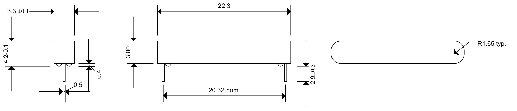 Abmessungen: L 22.3 × B 3.3 mm