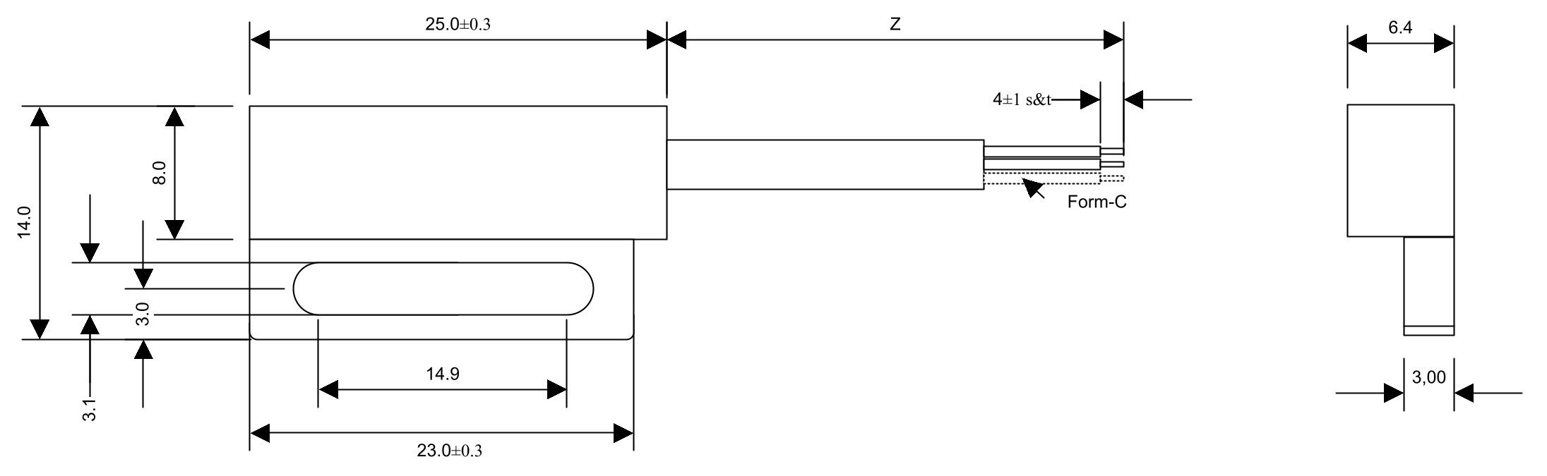 L 25 × B 14 × H 6.4 mm
